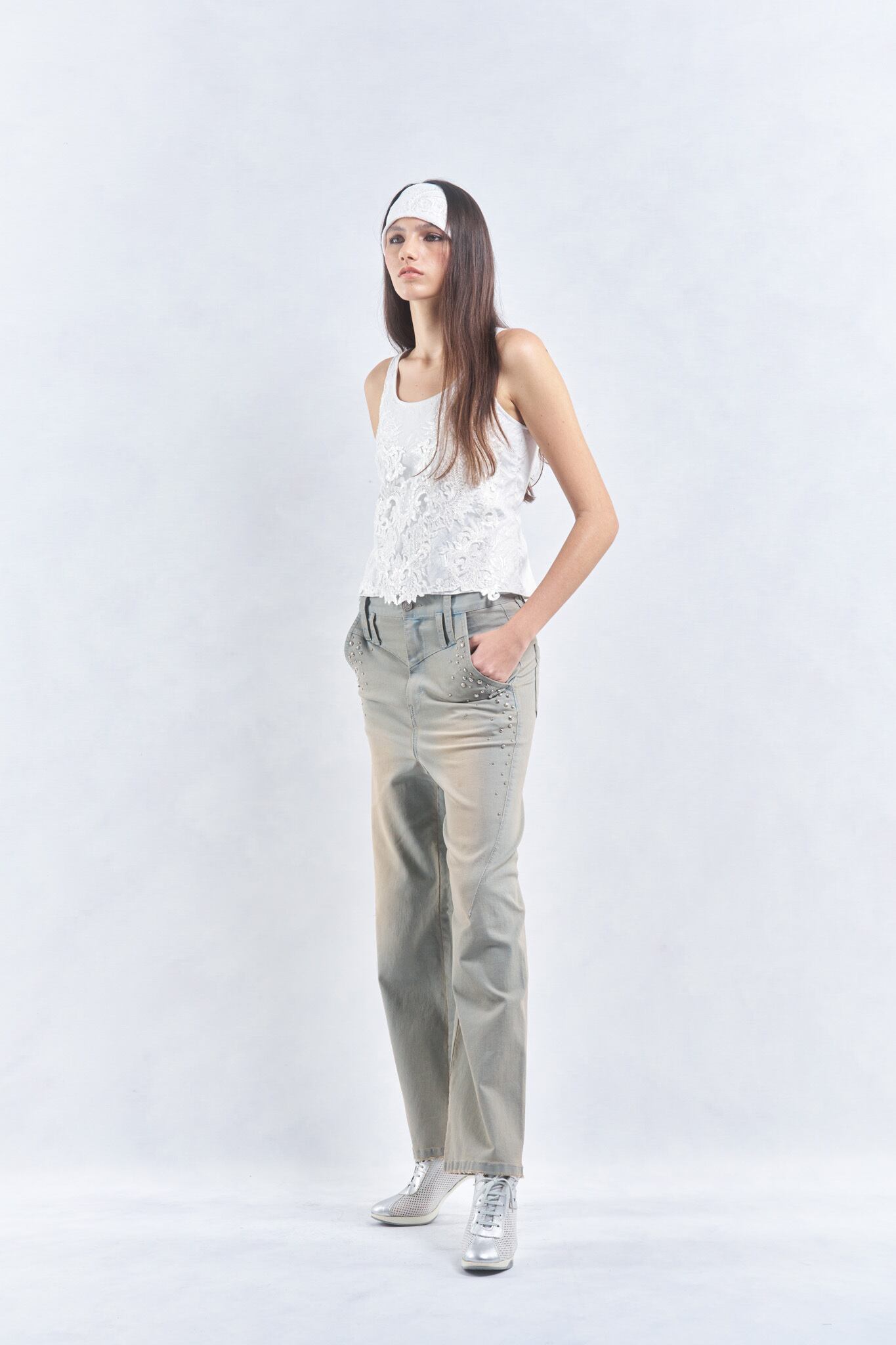 [2000Archives] JACQUARD BEADED TANK TOP (WHITE)