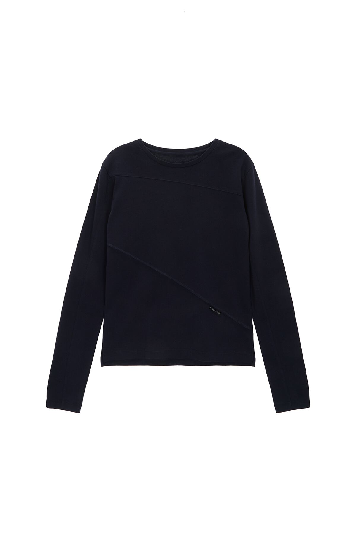 [Matin Kim] DIAGONAL SLIMFIT LONG SLEEVE TOP IN NAVY