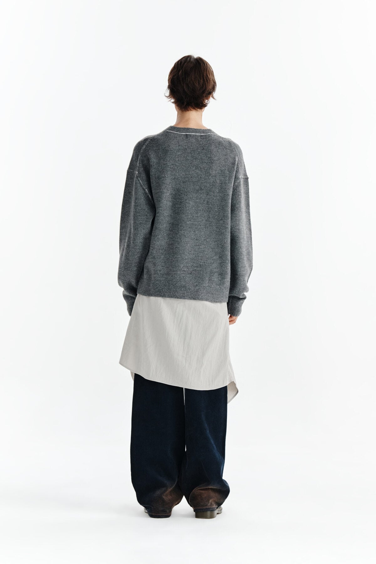 [Matin Kim] COLOR LINE POINT LOGO KNIT PULLOVER IN GREY