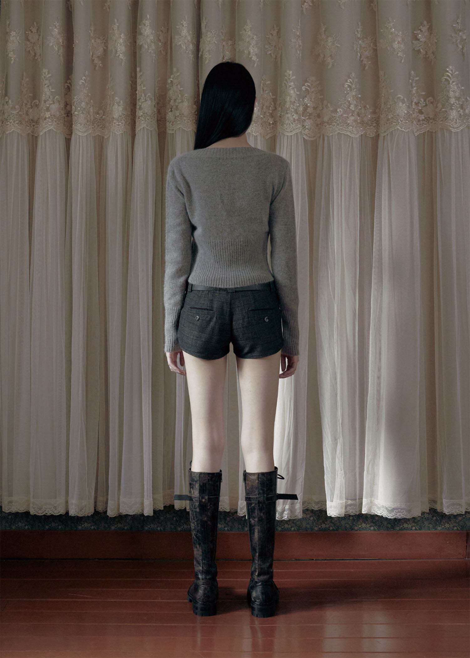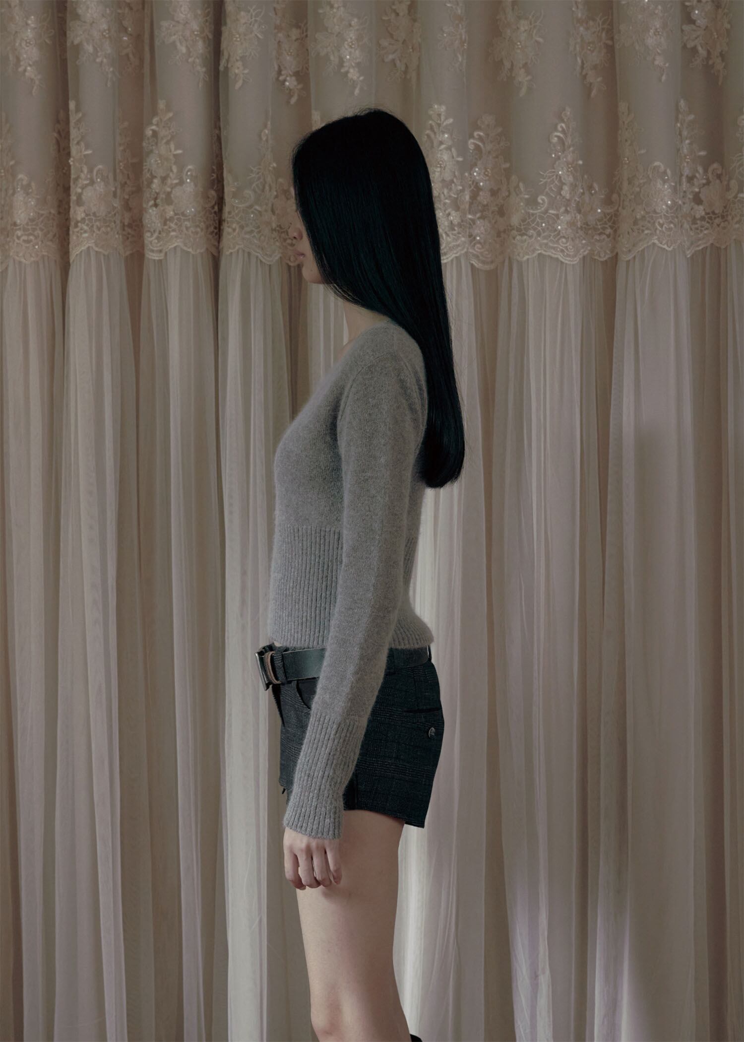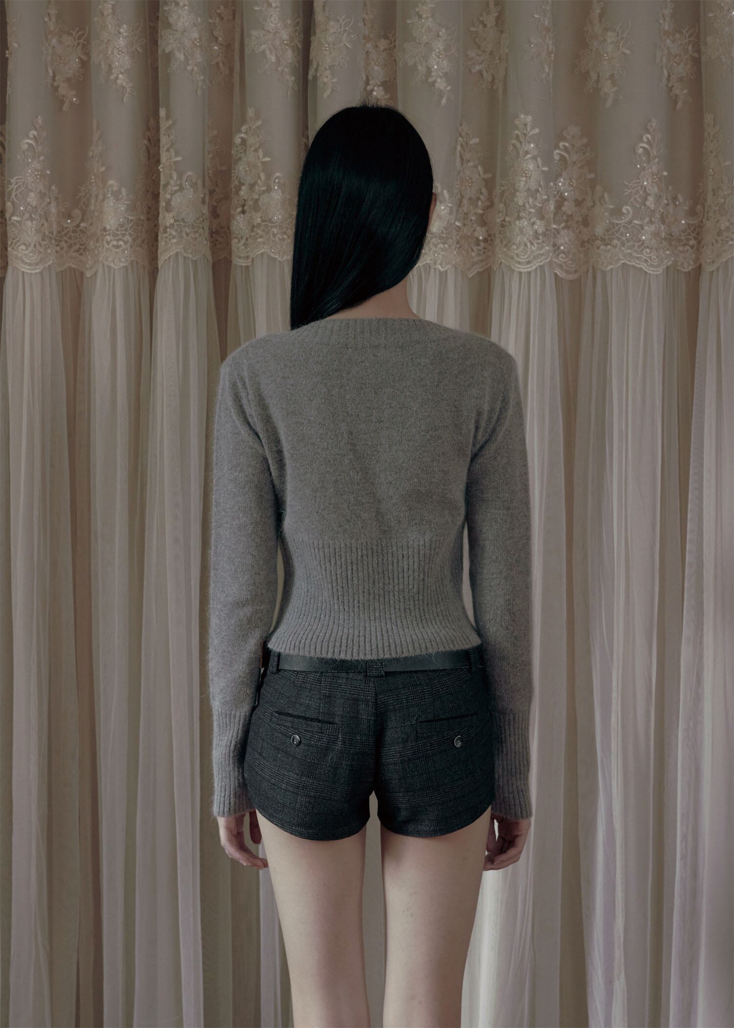 [BOHEMIAN SEOUL] V-NECK SLIM FIT ANGORA KNIT, BEIGE