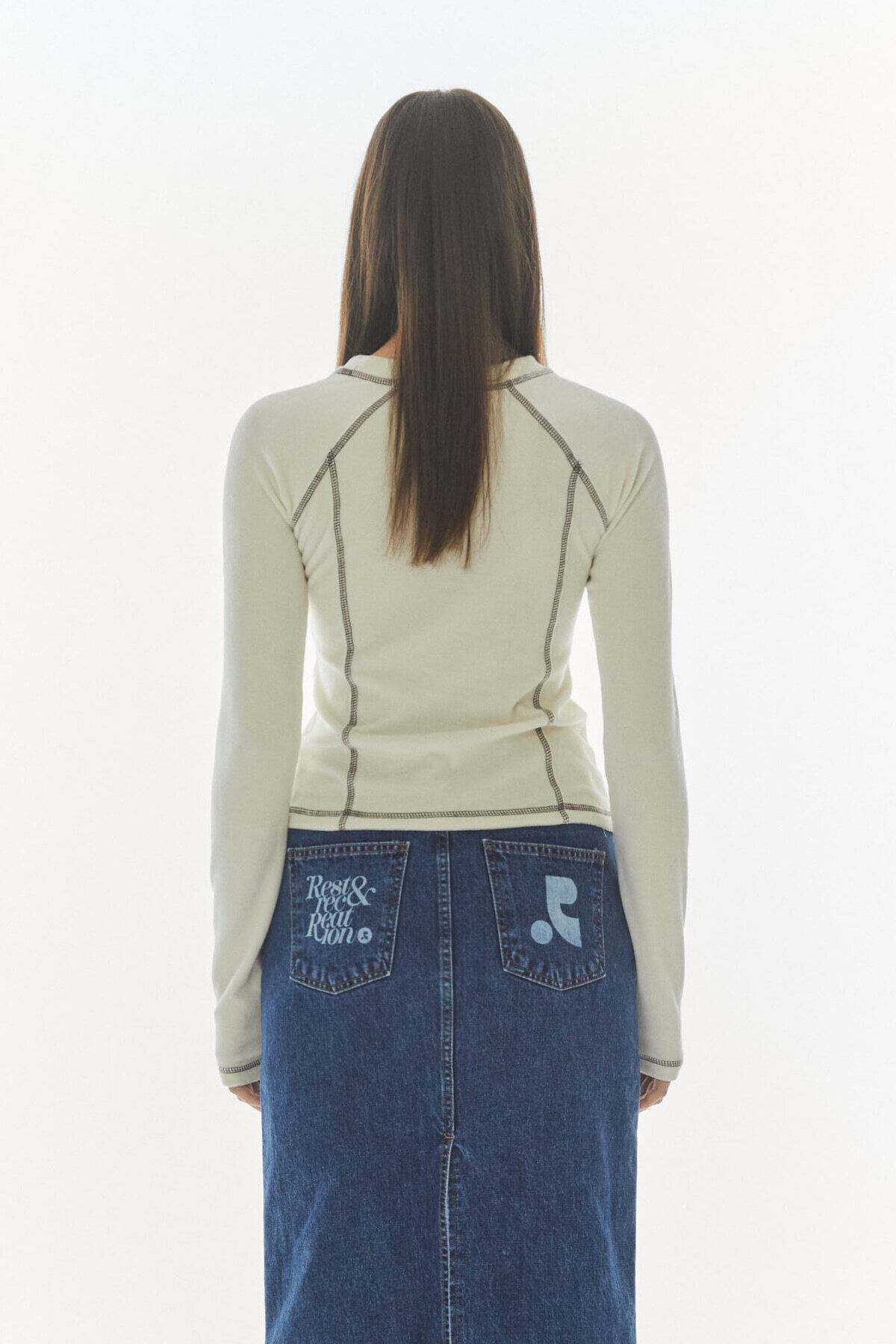[Rest & Recreation] VELVET LONG SLEEVE TOP - IVORY