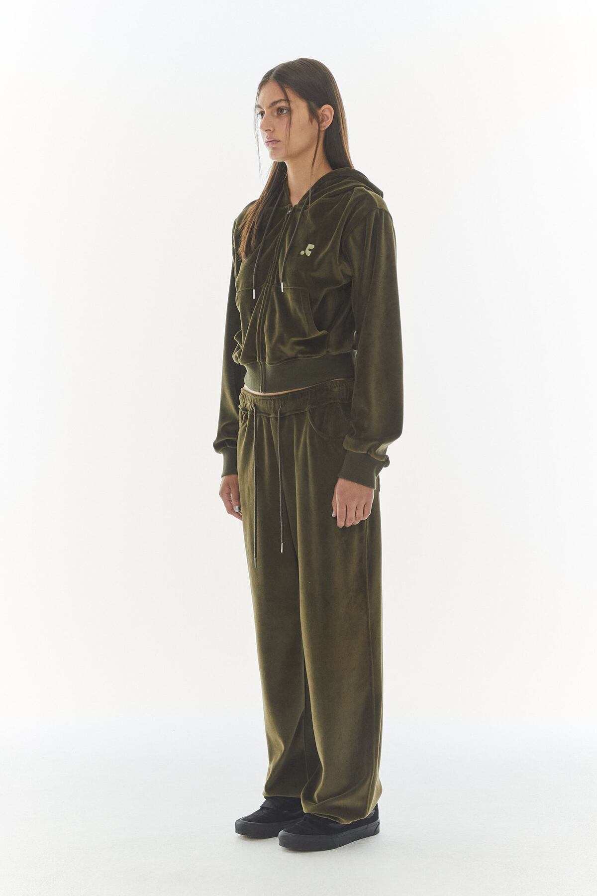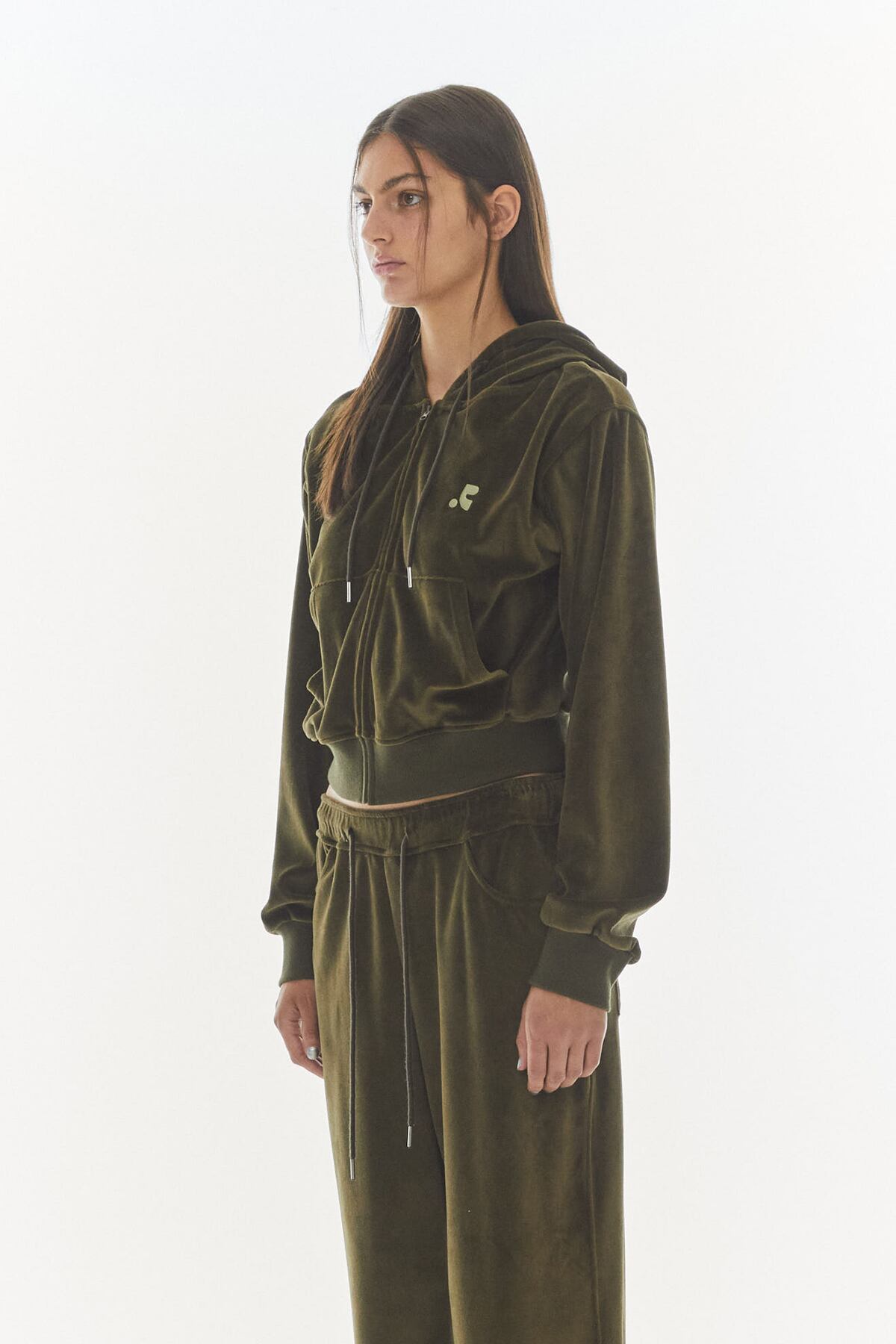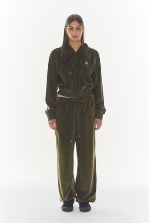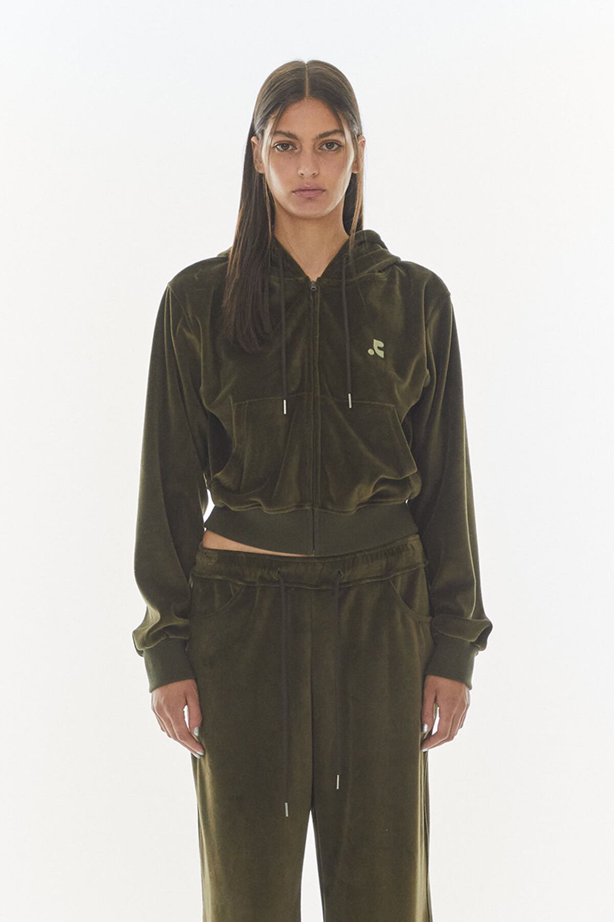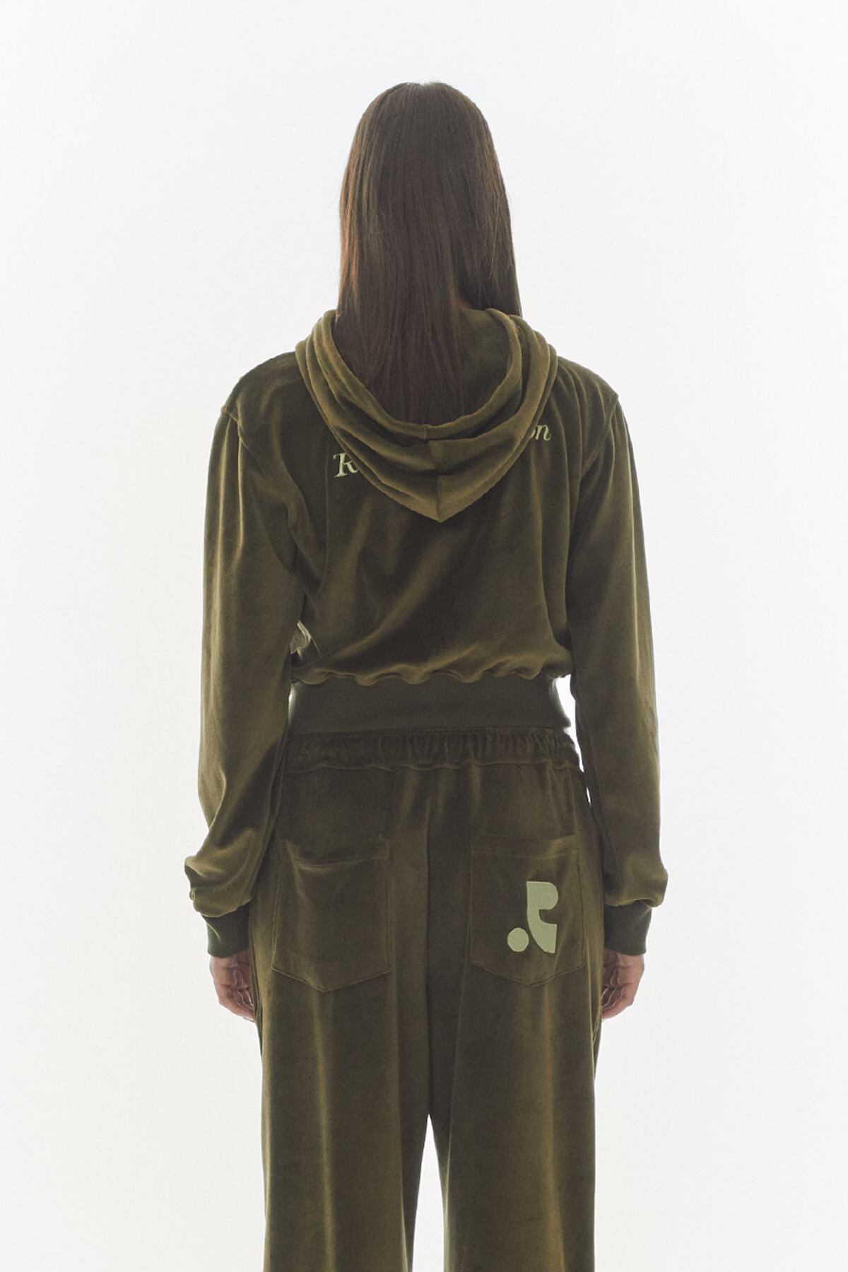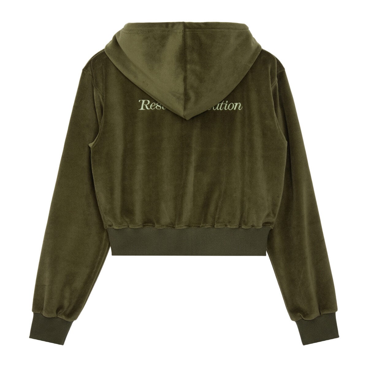 [Rest & Recreation] VELVET HOOD ZIP-UP - KHAKI
