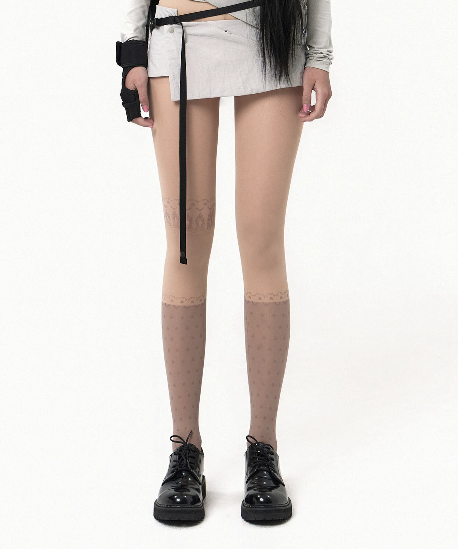 [OJOS] Knee Socks Graphic Stocking / Grey