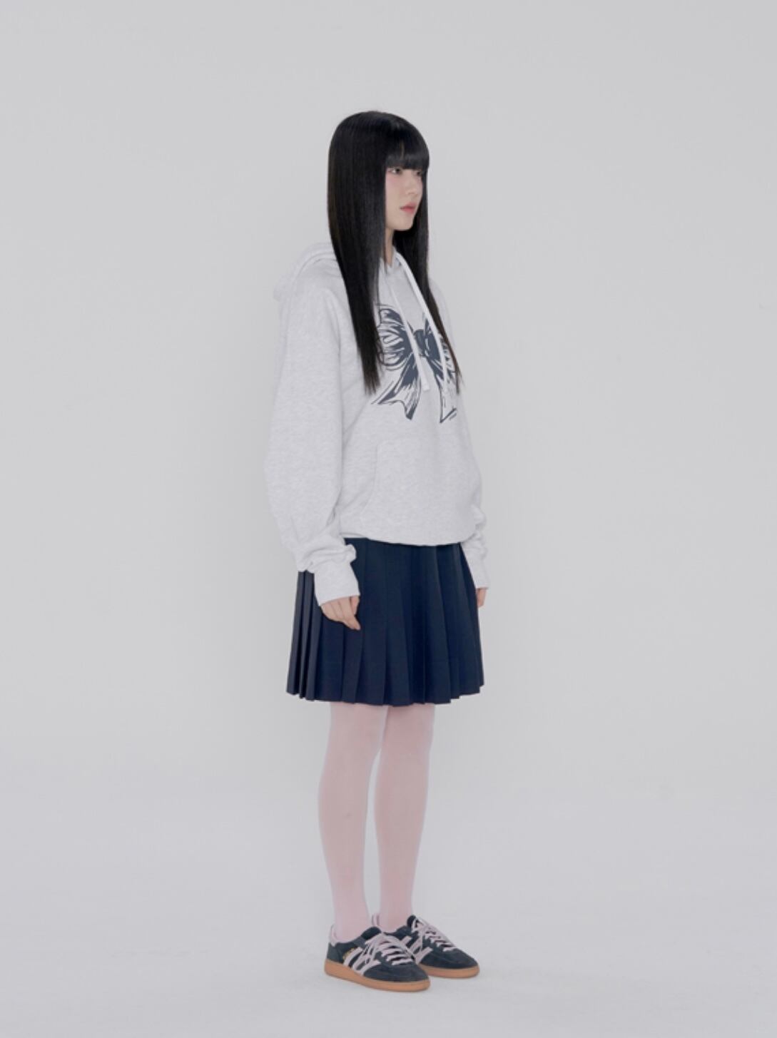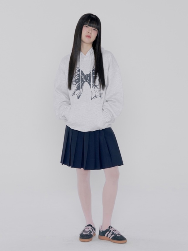 [ITZABIVE] RIBBON LOGO HOODIE - LIGHT GRAY 正規品 韓国ブランド 韓国通販 韓国代行 韓国ファッション イッザバイブ 日本 店舗