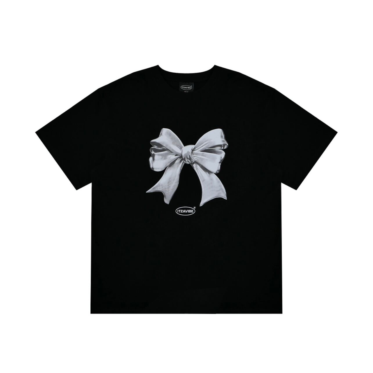 [ITZABIVE] METALLIC RIBBON LOGO T SHIRT - BLACK 正規品 韓国ブランド 韓国通販 韓国代行 韓国ファッション イッザバイブ 日本 店舗