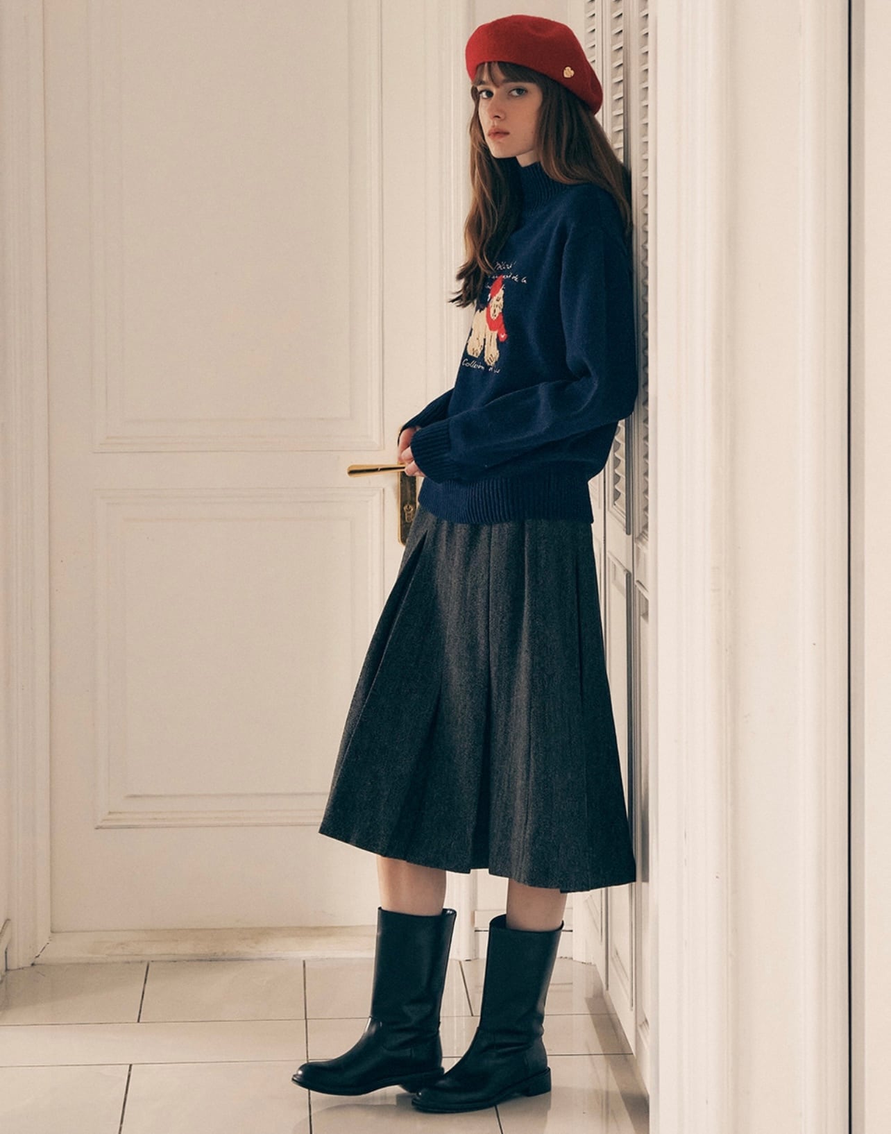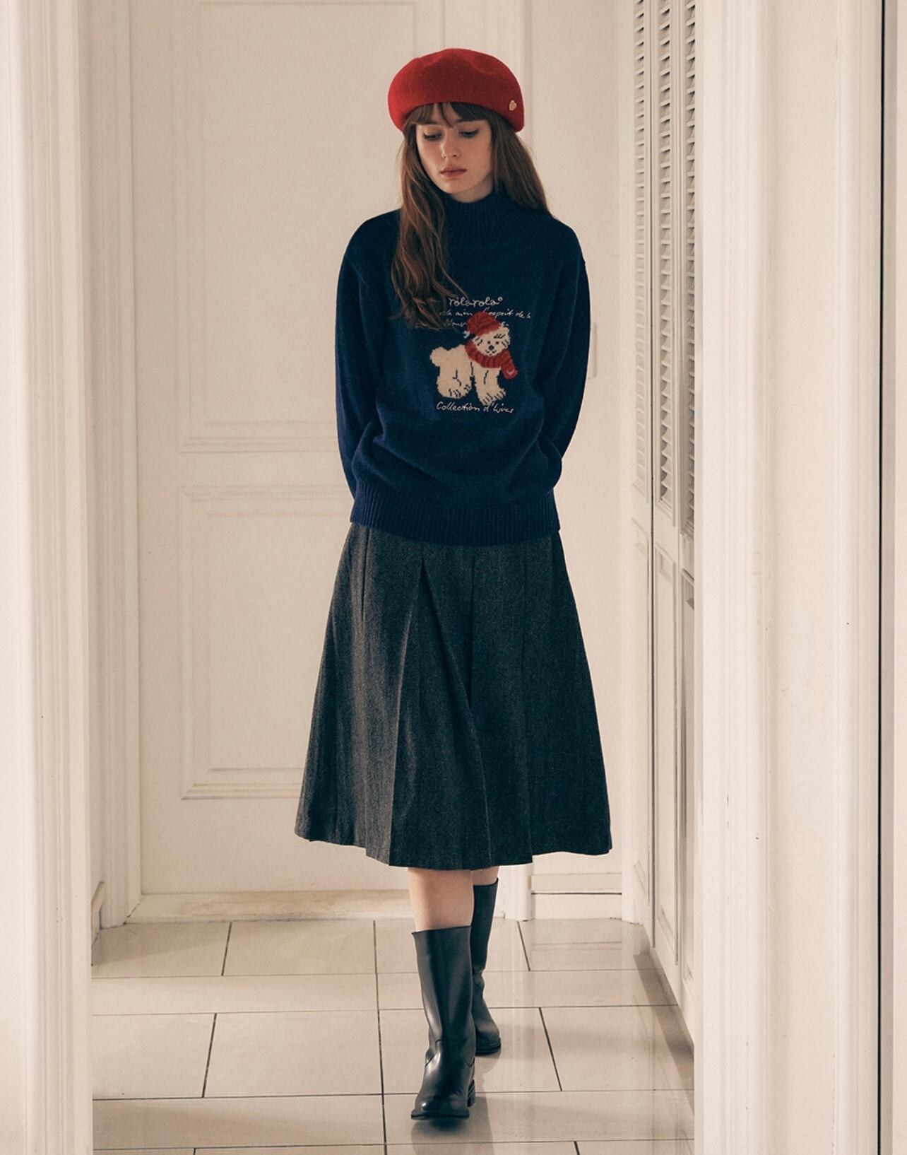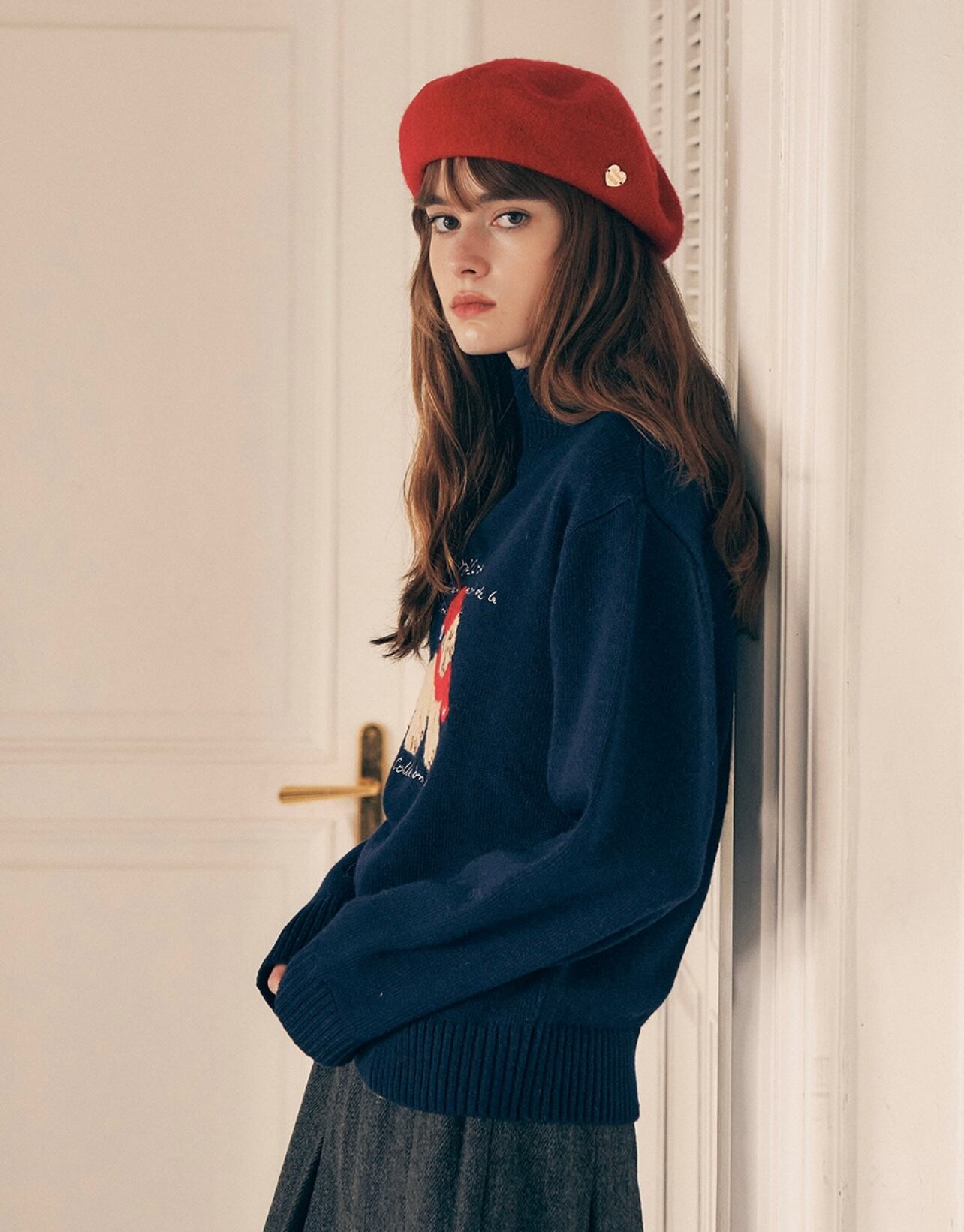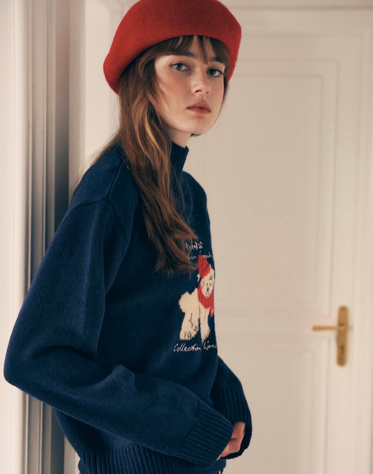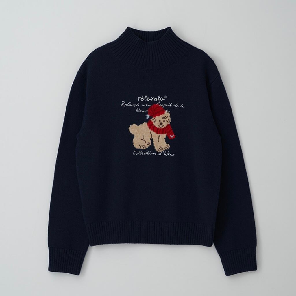 [ROLAROLA] PUPPY JACQUARD HIGH NECK KNIT NAVY 正規品 韓国ブランド 韓国通販 韓国代行 韓国ファッション ロラロラ 日本 店舗
