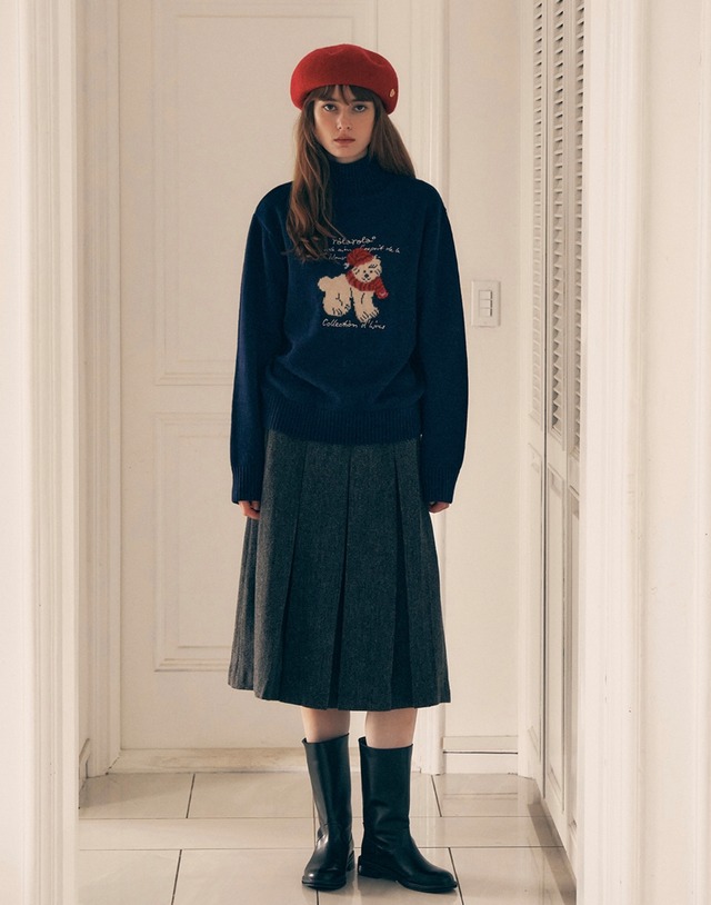 [ROLAROLA] PUPPY JACQUARD HIGH NECK KNIT NAVY