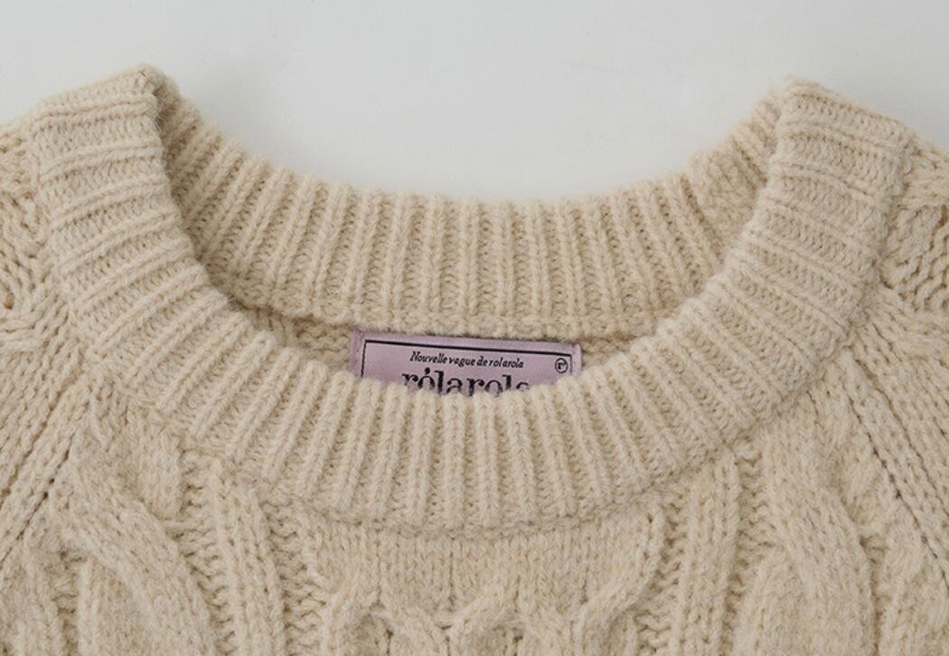 [ROLAROLA] ROUND CABLE LABEL KNIT IVORY 正規品 韓国ブランド 韓国通販 韓国代行 韓国ファッション ロラロラ 日本 店舗