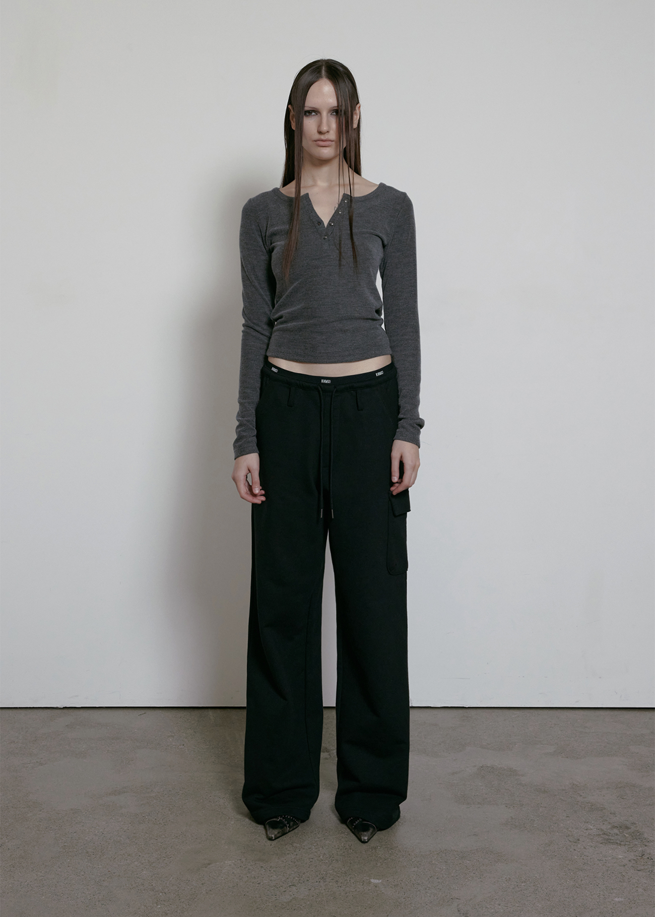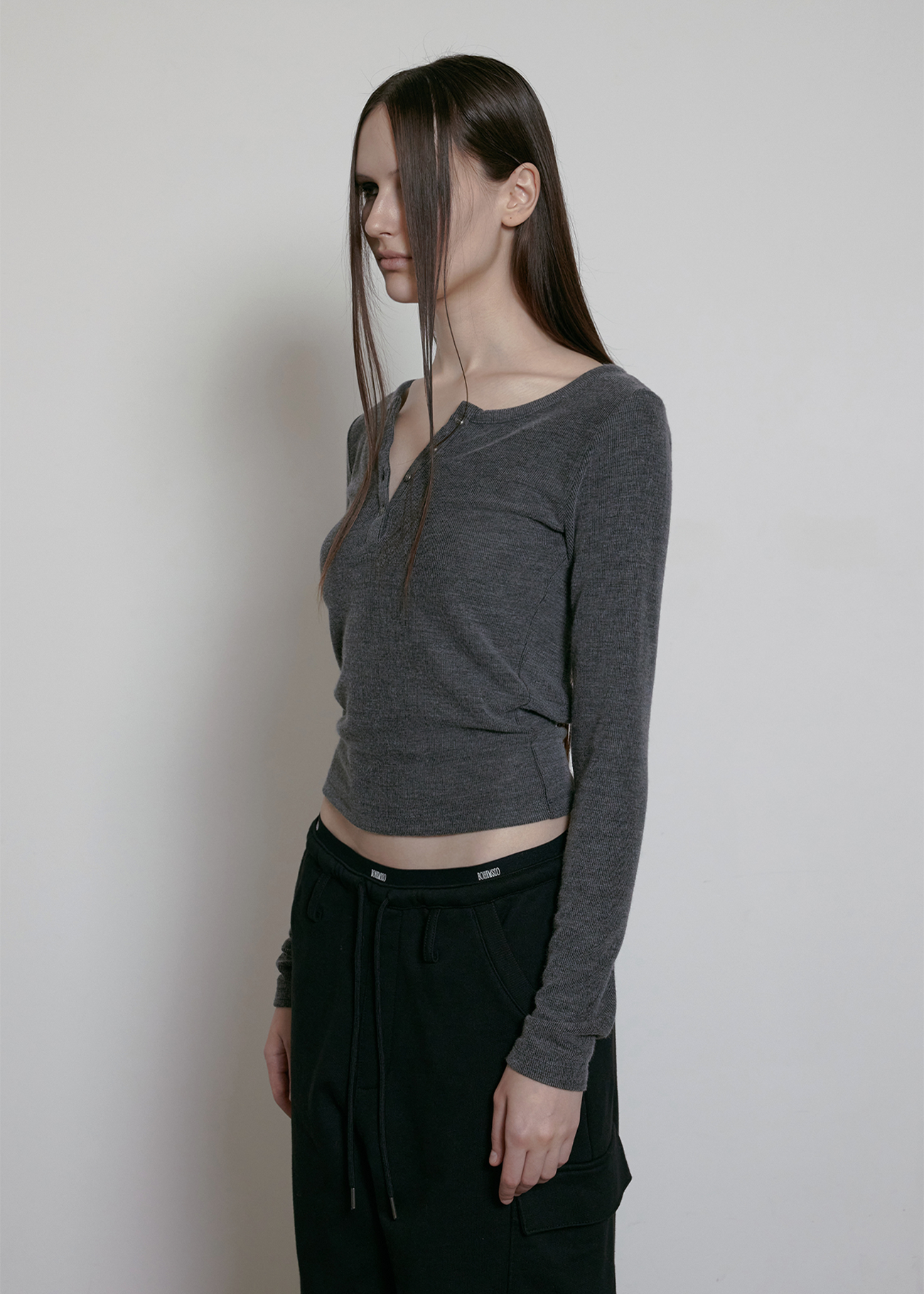[BOHEMIAN SEOUL] BACK HOLE RIBBED TOP, VINTAGE GRAY 正規品 韓国ブランド 韓国通販 韓国代行 韓国ファッション bohemseo ボヘミアンソウル 日本 店舗