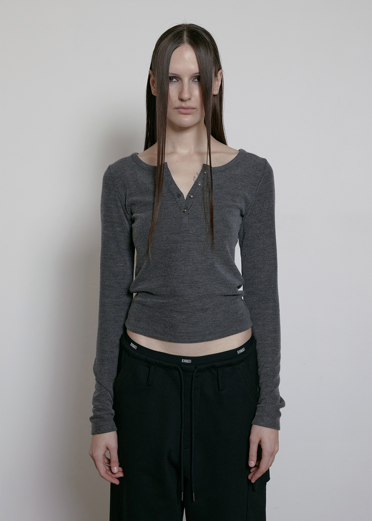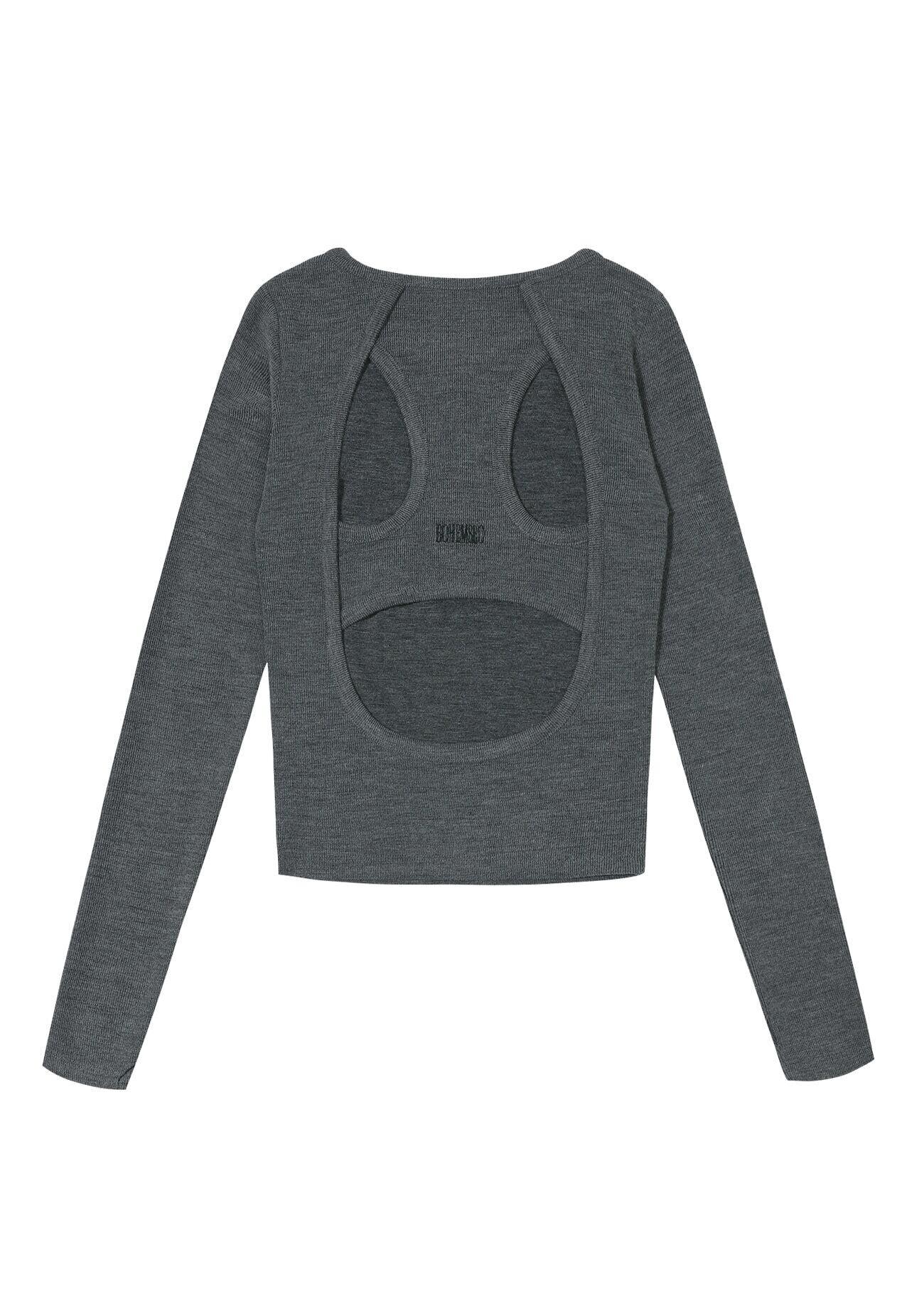 [BOHEMIAN SEOUL] BACK HOLE RIBBED TOP, VINTAGE GRAY