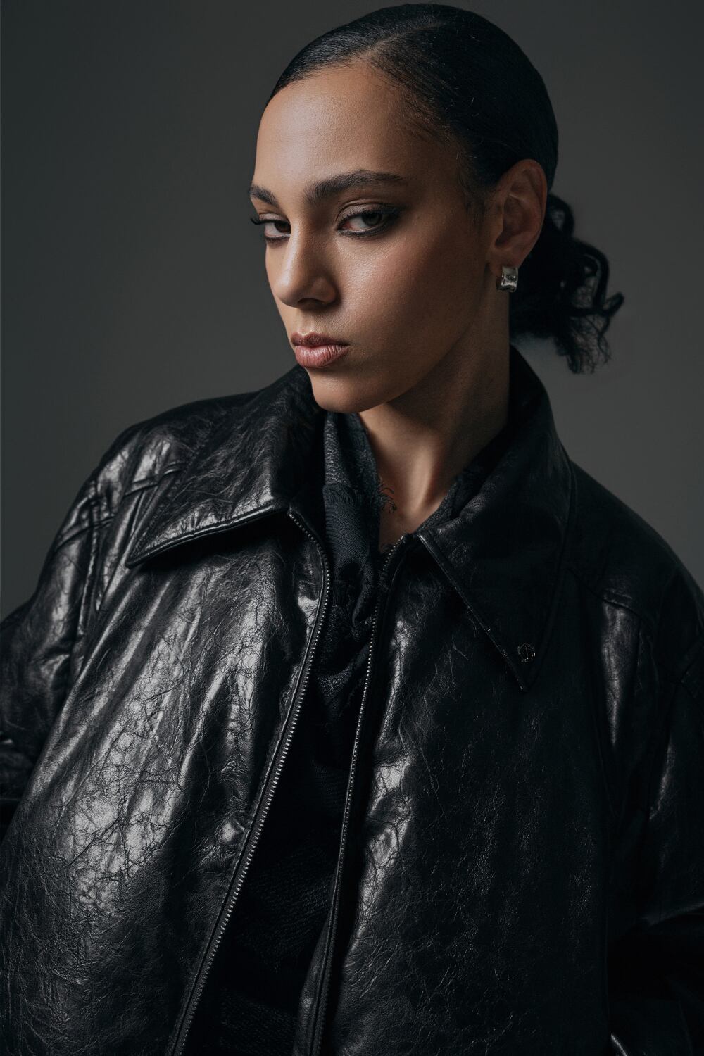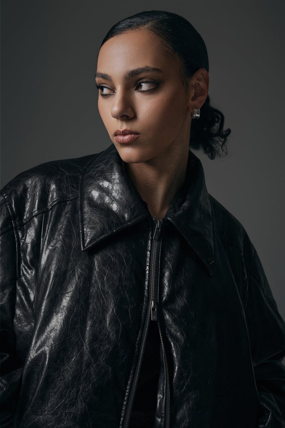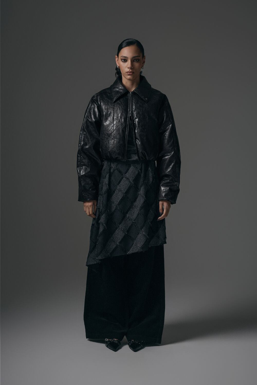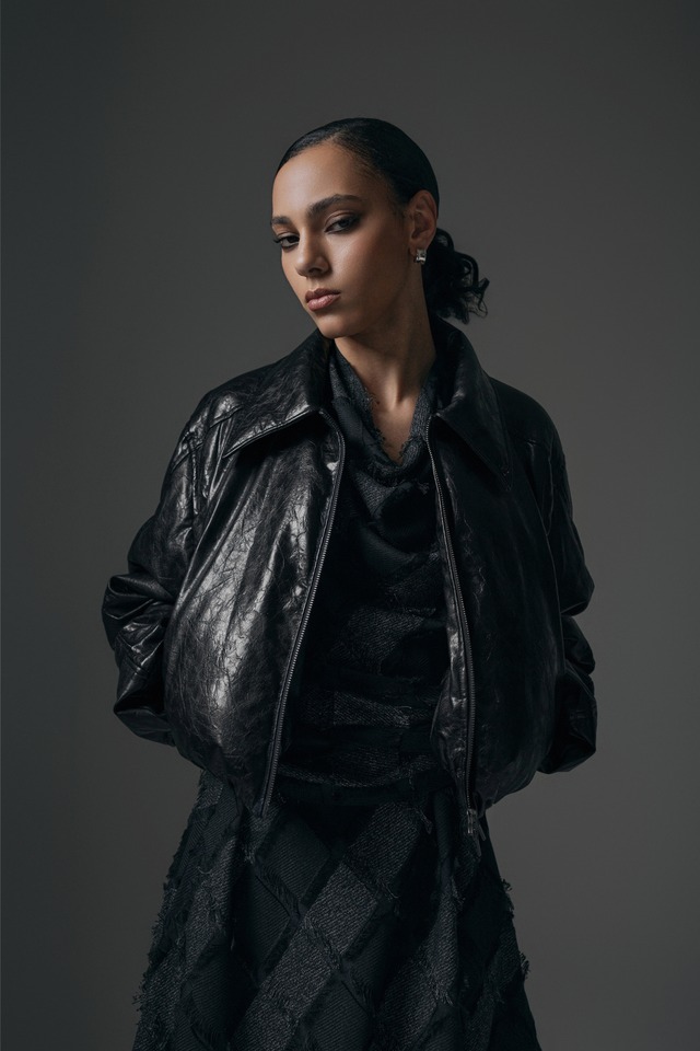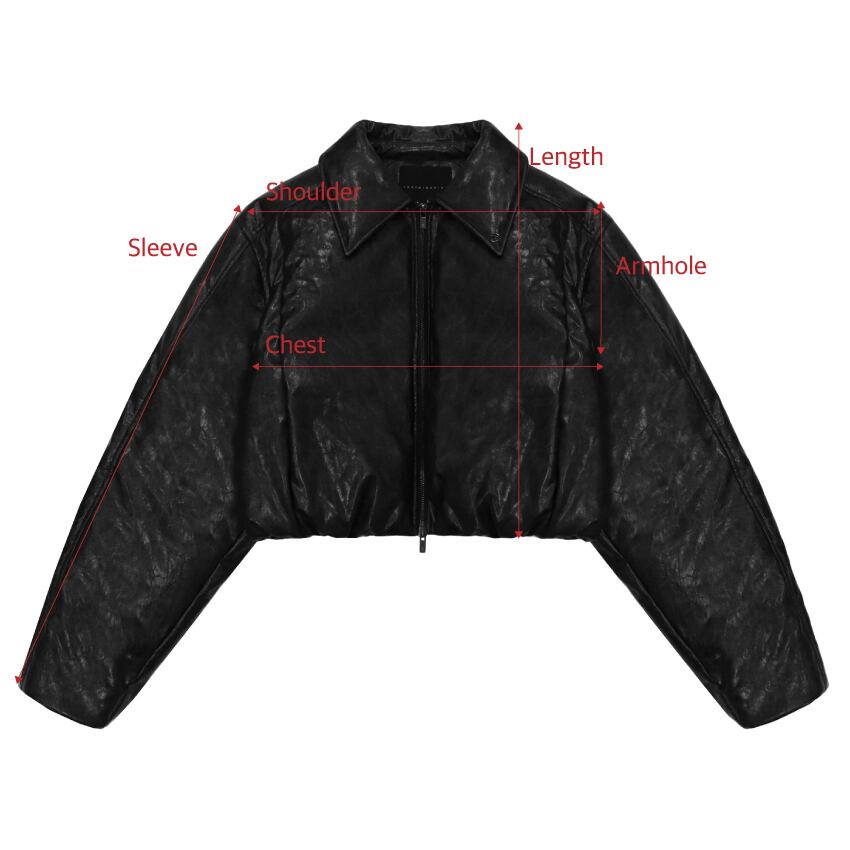[TREEMINGBIRD] Glossy Leather Short Padding Jumper [ Black ]