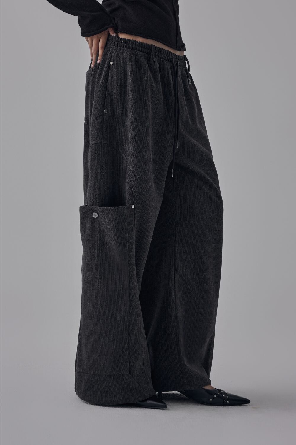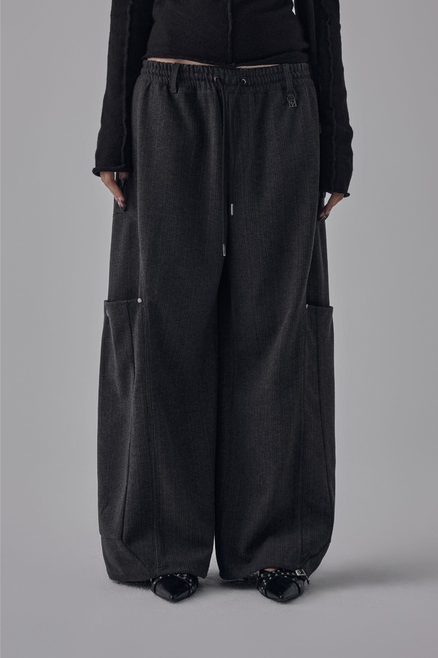 [TREEMINGBIRD] Brushed Cargo Stripe Pants [ Charcoal ]