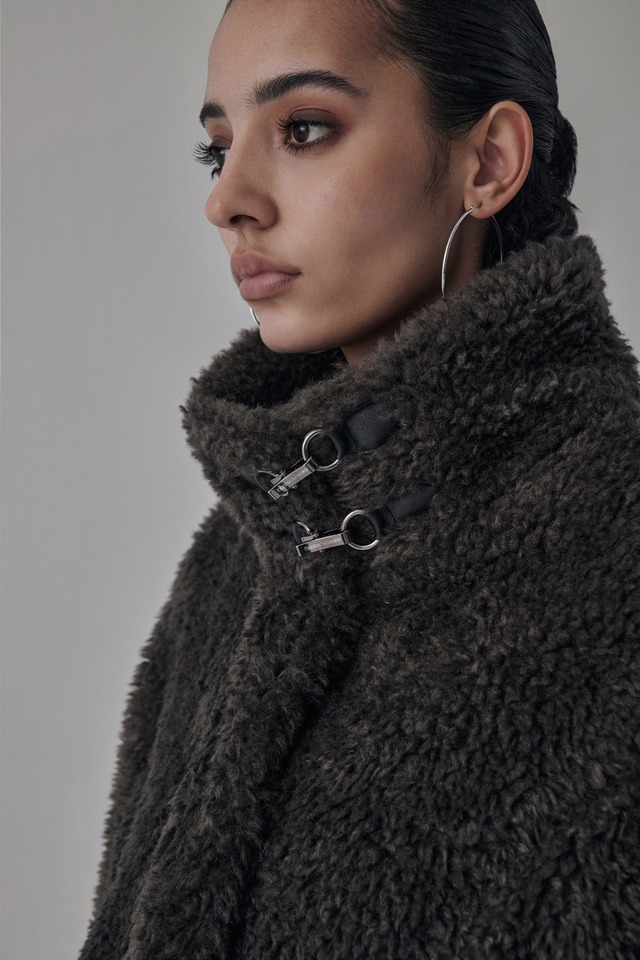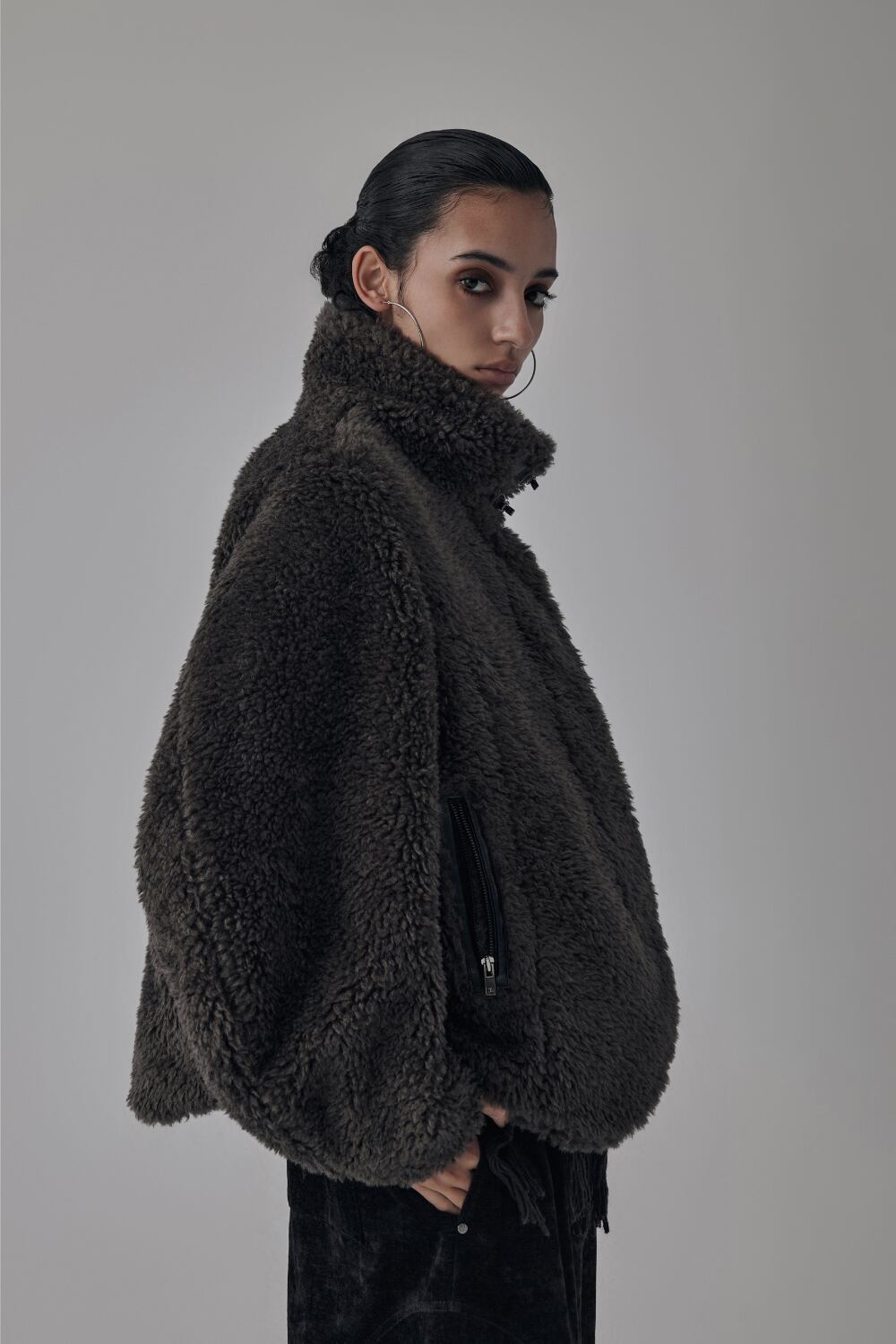 [TREEMINGBIRD] Metal Hook Button Shearing Fur Jacket [ Charcoal ]