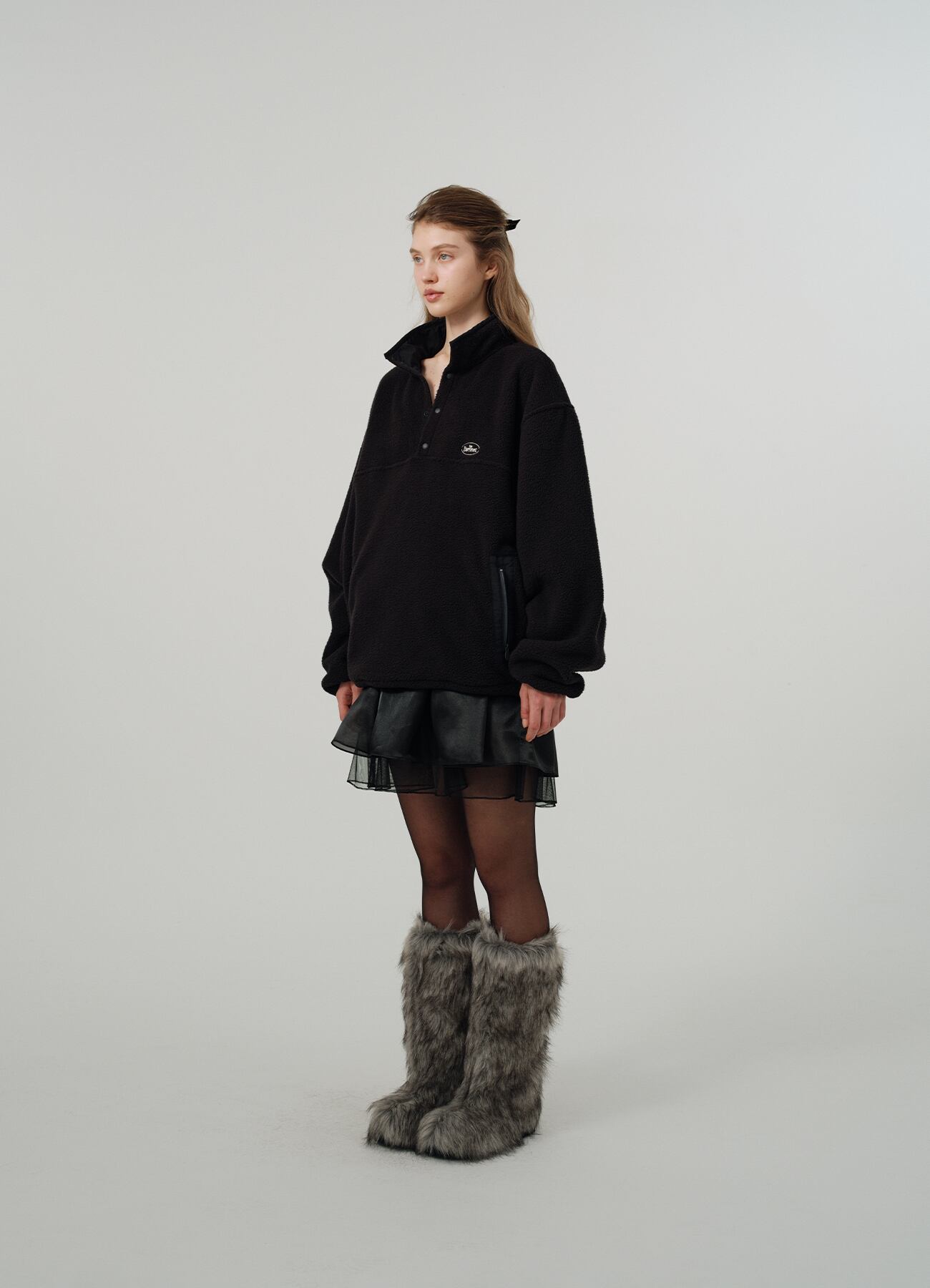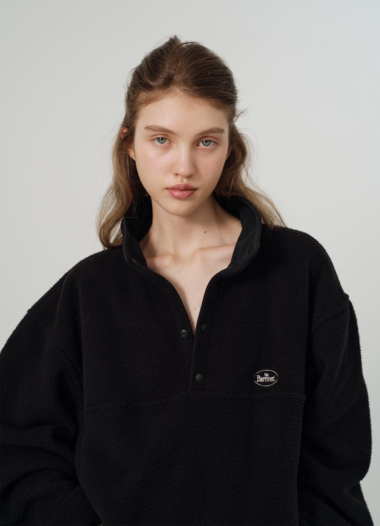[The Barnnet] Black Lappy Fleece Half-Snap Pullover
