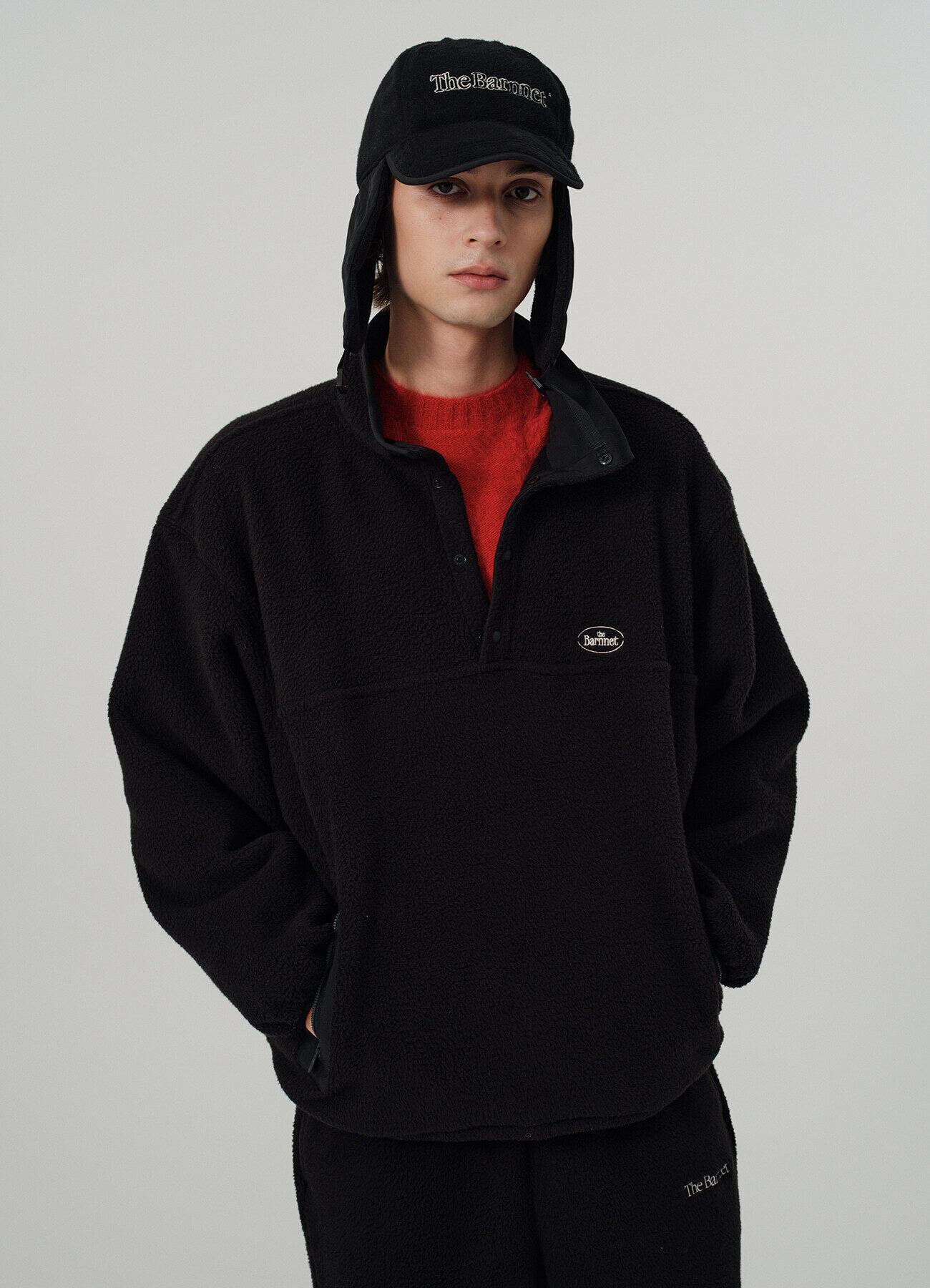 [The Barnnet] Black Lappy Fleece Half-Snap Pullover 正規品 韓国ブランド 韓国通販 韓国代行 韓国ファッション 日本 店舗 ザ バーネット