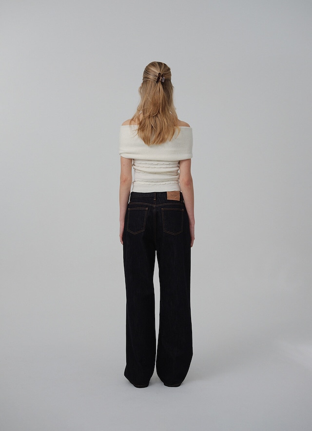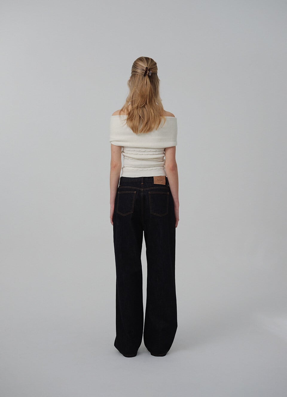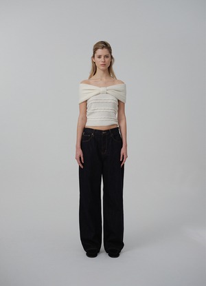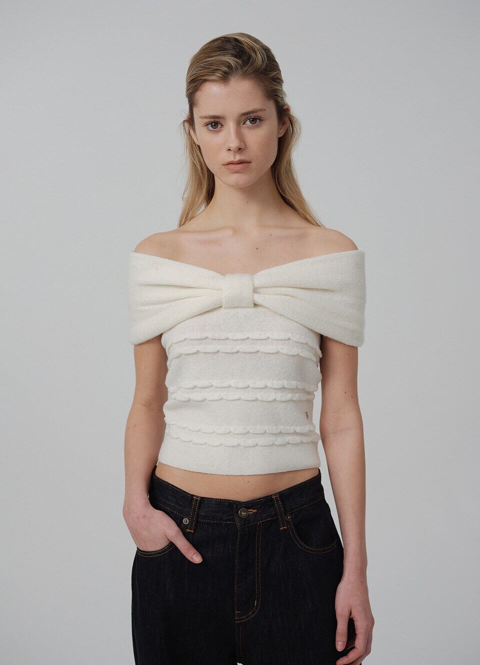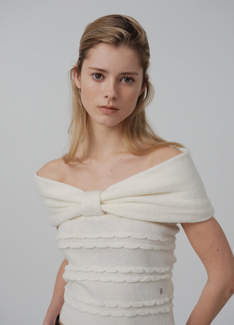 [The Barnnet] Ivory Ribbon Off-Shoulder Knit Top
