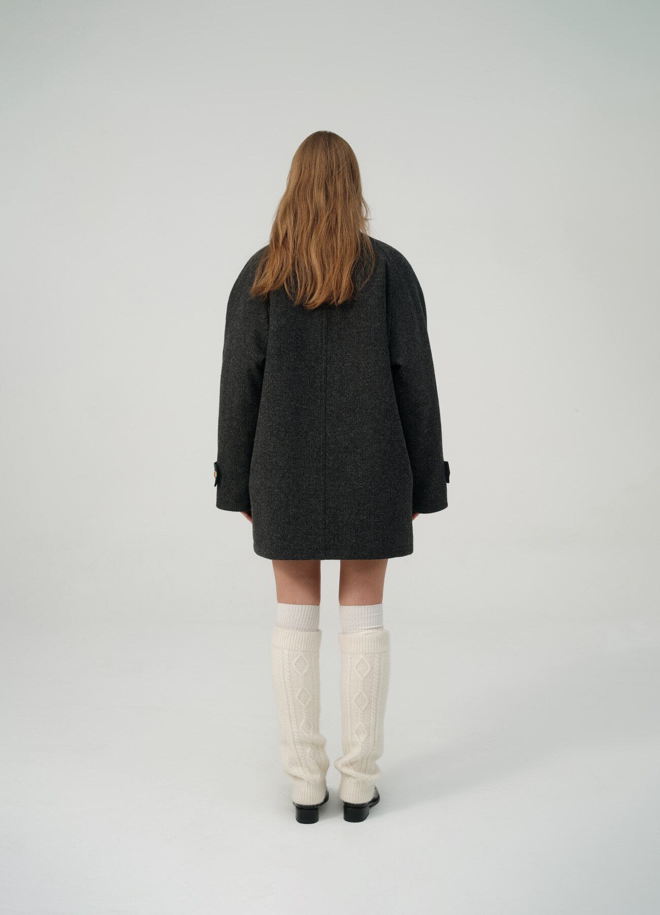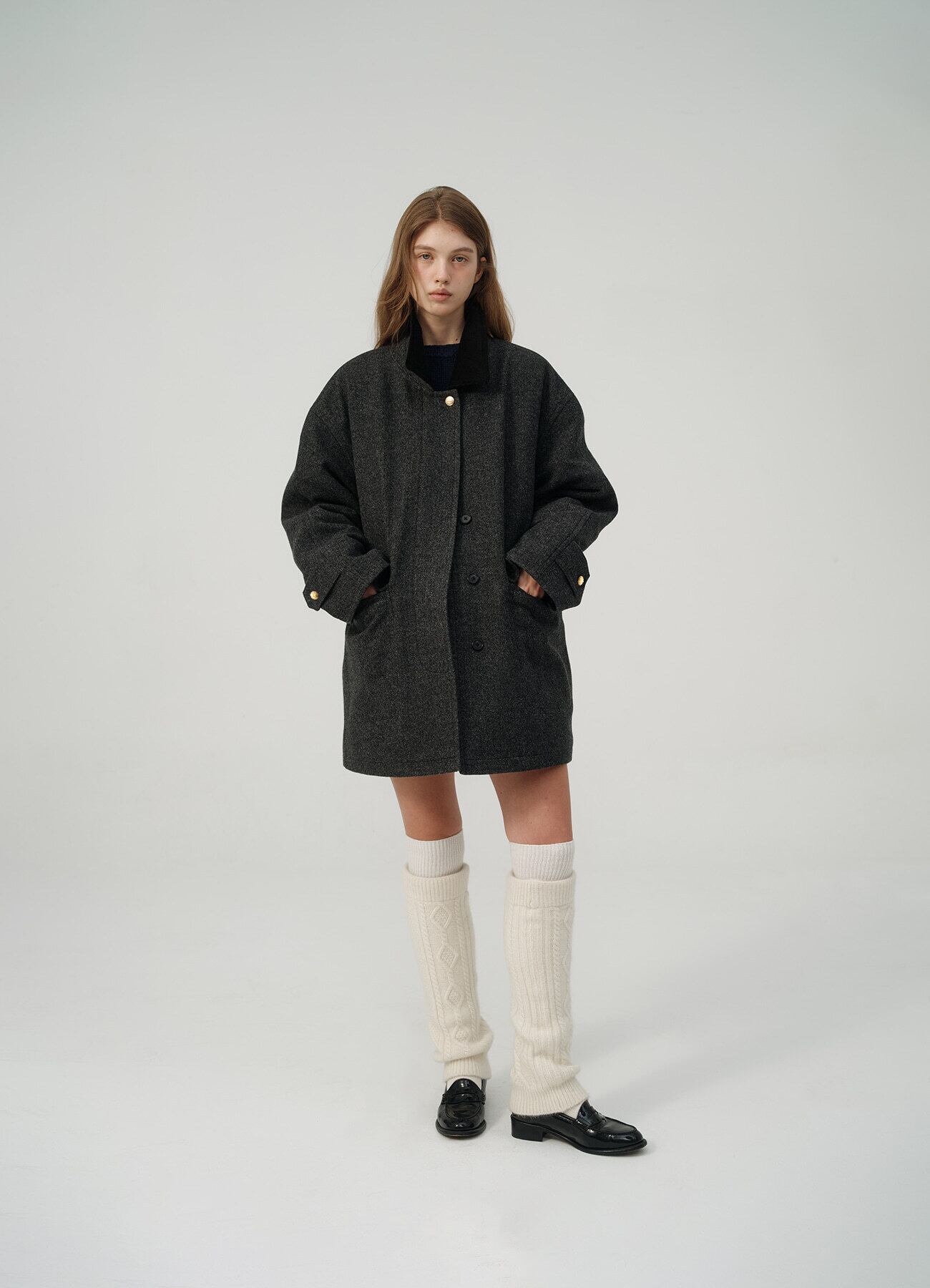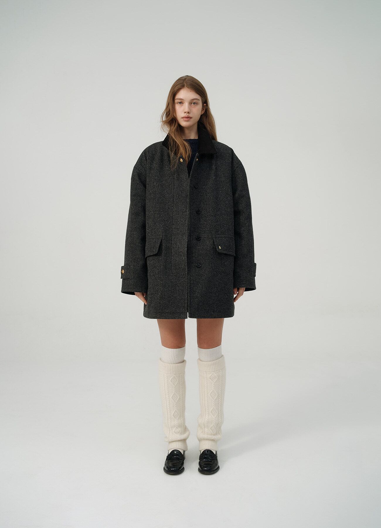 [The Barnnet] Charchoal Corduroy Collar Herringbone Short Coat