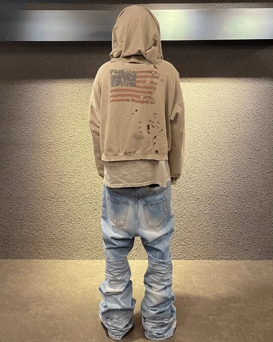 [UNDERMYCAR] VINTAGE AMERICAN FLAG DIRTY WASHED ZIPPED HOODIE - ECRU 正規品 韓国ブランド 韓国通販 韓国代行 韓国ファッション アンダーマイカー 日本 店舗