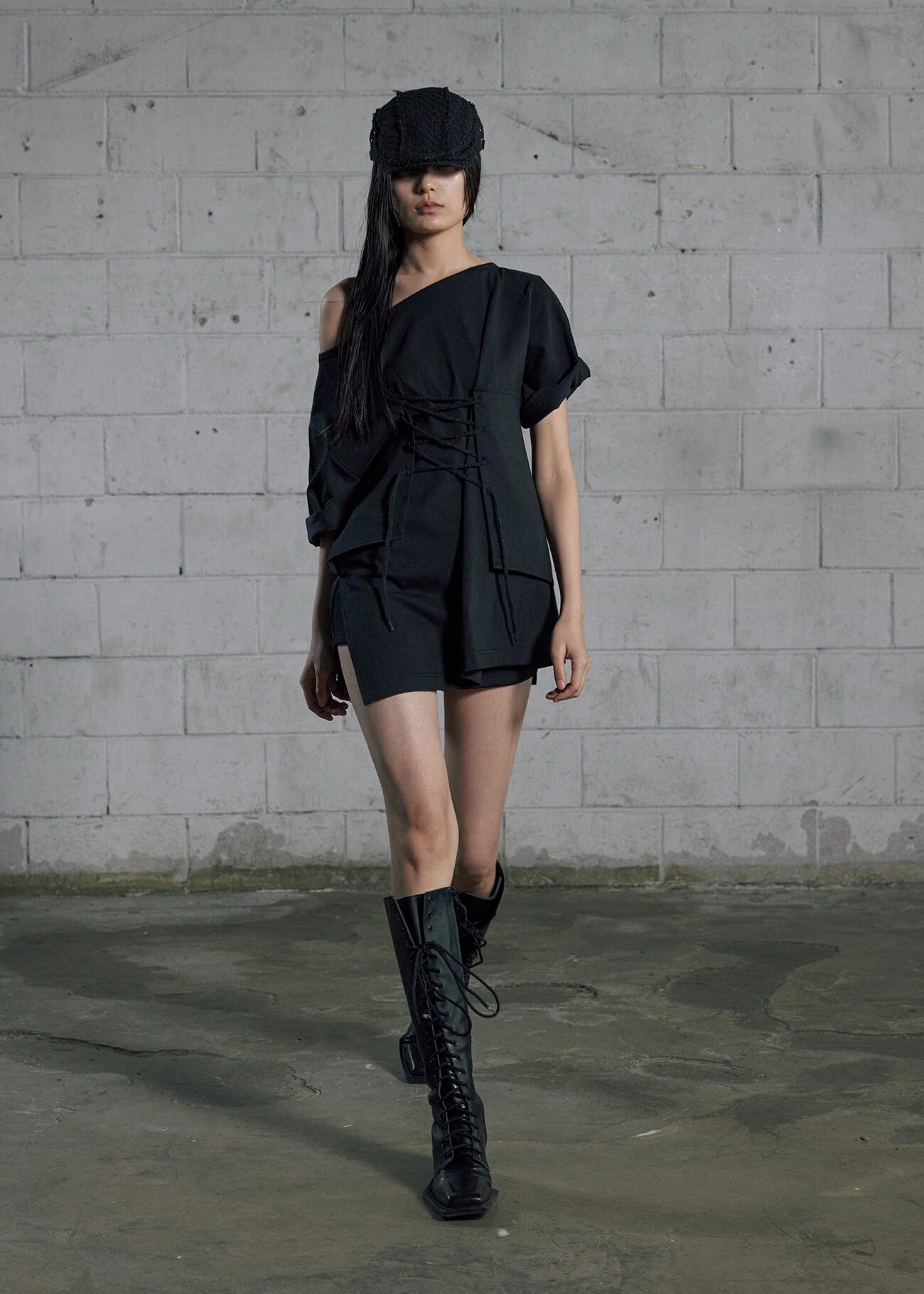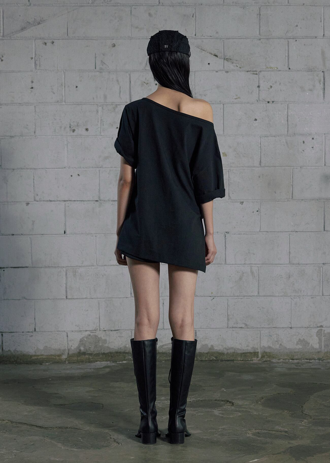 [BOHEMIAN SEOUL] UNBALANCED CORSET OVERSIZED T, BLACK